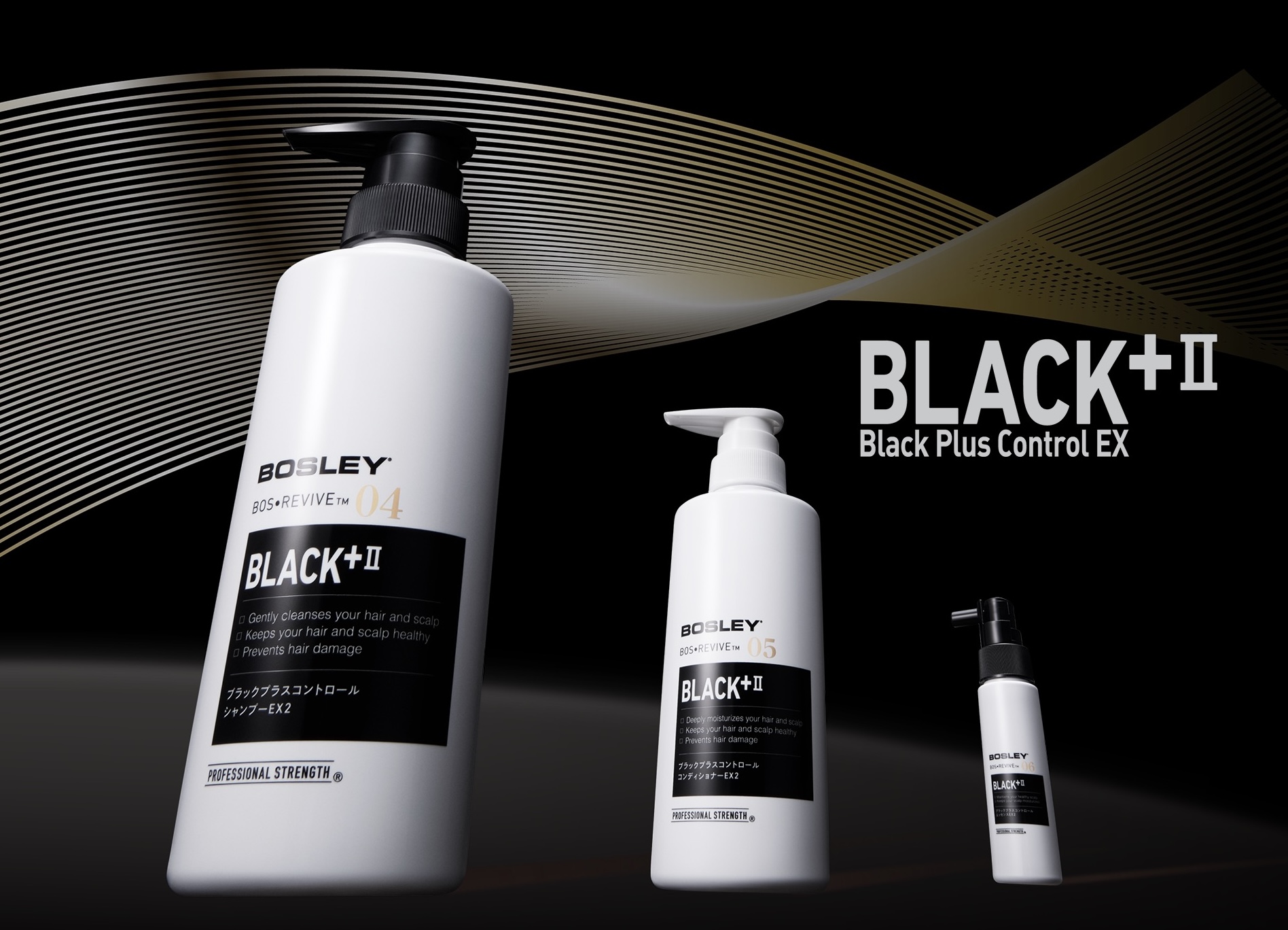 「ブラックプラスコントロール シャンプー EX 2」を使い気になる頭皮のベタつき・乾燥をケアし、髪の根元からハリ・コシを与えます。